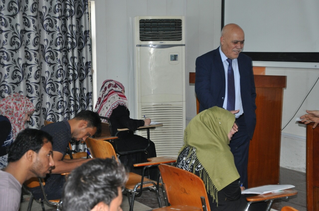 سبتمبر 12, 2017تفقد رئيس جامعة المثنى الاستاذ الدكتور حسن عودة الغانمي سير الامتحانات النهائية الدور الثاني واكد السيد رئيس الجامعة خلال زيارته التي رافقه فيها الاستاذ الدكتور حسين كامل جابر مساعد رئيس الجامعة للشؤون الادارية والمالية على توفير كافة الخدمات والمستلزمات التي توفر الاجواء المناسبة لأداء الامتحانات ودعى الطلبة الى بذل المزيد من الجهود للتفوق والنجاح في اداء الامتحانات