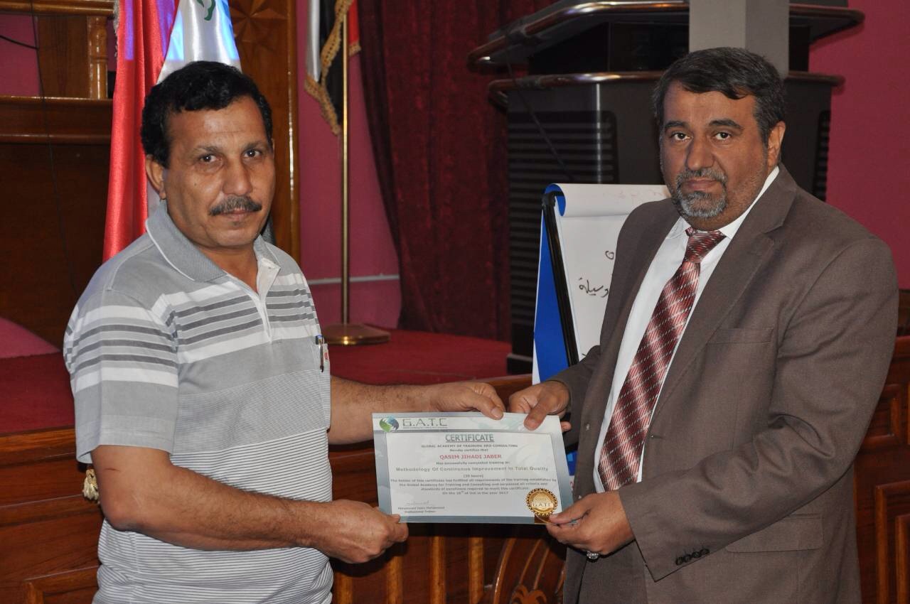 نوفمبر 12, 2017اختتمت اليوم الخميس 26/10/2017 الدورة التدريبة المنهجية للتحسين المستمر في الجودة الشاملة في جامعة المثنى التي اقامها قسم ضمان الجودة والاداء الجامعي في رئاسة الجامعة لمسؤولي شعب ضمان الجودة في كليات الجامعة وبعض المهتمين بضمان الجودة في الجامعة والتي استمرت خمسة ايام وباشراف مباشر من الاستاذ الدكتور قاسم محمد الحلو مساعد رئيس الجامعة للشؤون العلمية وبالتعاون من مستشار التدريب والمدرب الدولي محمد جاسم محمد مدير اكاديمة التطوير المؤسسي الذي اكد في ختام الدورة ان هذه الدورة من الدورات المتميزة التي اقامها للعديد من مؤوسسات الدولة حيث كان هناك تفاعل ورغبة كبيرة من المشاركين للاستفادة من هذة الدورة فيما قال الاستاذ المساعد الدكتور احمد حسن علي مدير قسم ضمان الجودة والاداء الجامعي في رئاسة الجامعة ان هدف اقامة هذة الدورات المستمرة هو تطوير جامعة المثنى بكافة مفاصلها واضاف ان الدورة تضمنت عدة محاور مهمة منها مفهوم الجودة الشاملة ومراحل تطور الجودة في التعليم واستراتيجيات حل المشكلات وتصميم الاجراءات الادارية وخطة الجودة في كليات الجامعة وقام المساعد العلمي الاستاذ الدكتور الحلو وعمداء كليات التمريض والتربية للعلوم الصرفة بتوزيع شهادات المشاركة على المشاركين في الدورة