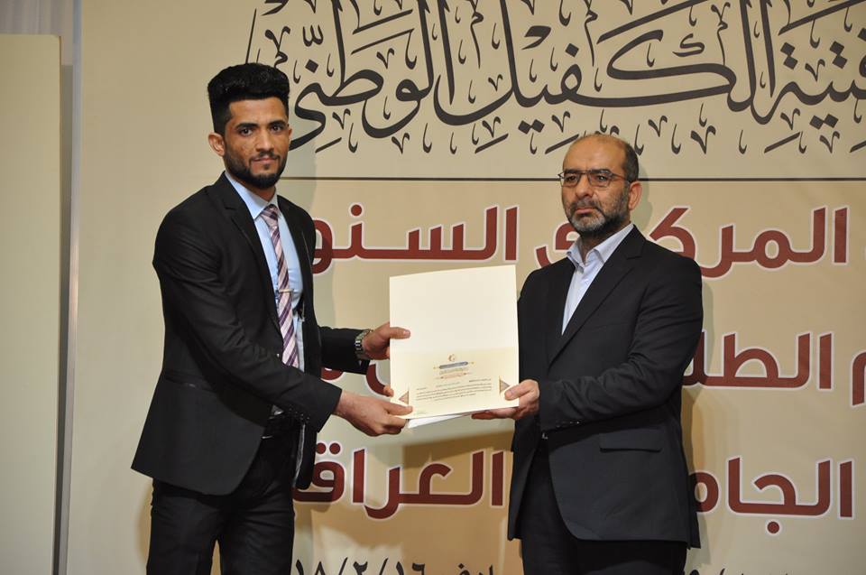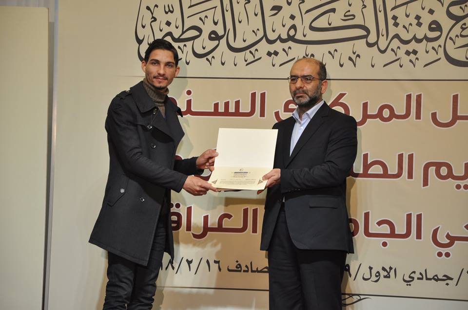 فبراير 19, 2018بحضور وزير التعليم العالي والبحث العلمي الاستاذ الدكتور عبد الرزاق العيسى كرمت العتبة العباسية المقدسة طلبة جامعات العراق الأوائل على كلياتهم للعام الدراسي 2016 ــ 2017 بمشاركة طلبة جامعة المثنى الاوائل وحضر التكريم الذي اقيم في كربلاء المقدسة ممثلي الجامعات العراقية وجمعٍ من عمداء الكلّيات والمعاهد وممثّلي العتبات المقدسة في العراق فضلاً عن الطلبة المكرَّمين وأولياء أمورهم. ورافق الطلبة الاوائل من جامعة المثنى الاستاذ المساعد الدكتور ناجح جابر الميالي التدريسي في جامعة المثنى وممثل العتبات المقدسة في الجامعة الذي قال ان هذا التكريم يُقام للسنة السادسة على التوالي وذلك من أجل بناء أمل جديدٍ في نفوس طلبتنا، وزرع روح المثابرة والتميّز فيهم، ويأتي تواصلاً مع برامج العتبة العبّاسية المقدّسة الداعمة للمتميّزين والمتفوّقين من أبناء العراق. واشار الدكتور الميالي ان السيد وزير التعليم العالي والبحث العلمي وعد الطلبة الأوائل بتعيينهم حال توفر الدرجات قائلا ( بأنهم الأحق والأولى بخدمة البلد وهم القدوة الحسنة للتقدم العلمي في وطننا العزيز )