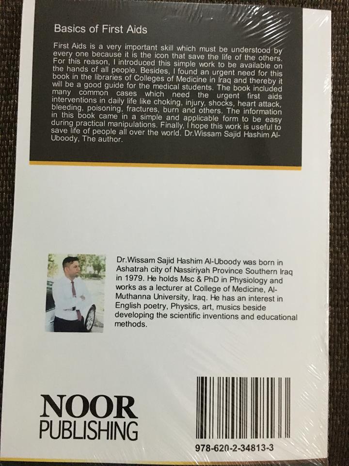 فبراير 28, 2018اصدار الدكتور وسام ساجد هاشم العبودي التدريسي في كلية الطب / جامعة المثنى كتاب يحمل عنوان اساسيات الاسعافات الاولية Basics of First Aids الذي تم طباعته ونشره في دار نشر المانية (Omni Scriptum) والكتاب يحمل رقما تسلسليا دوليا ISBN وقال الدكتور العبودي ان تأليف كتاب اساسيات الاسعافات الاولية تم تأليفة بالتعاون مع الدكتور مساعد حكمت الدهان وجاء هذا الكتاب نتيجة الحاجة الماسة لمثل هكذا كتاب في جوانب عديدة منها لأثراء المكتبة الطبية العراقية في مجال الاسعافات الاولية التي تكاد تكون قليلة في هذا الجانب واشاعة ثقافة موضوع الاسعافات الاولية المجتمعية وما لها من دور في زيادة الوعي الصحي لدى المجتمع و اتاحة مصدر تعليمي للإسعافات الاولية بين يدي طلبة كليات المجموعة الطبية كما يجدر الاشارة الى انه مؤلف الكتاب الدكتور العبودي قد قام بأدراج وتدريس مادة الاسعافات الاولية ضمن مادة اساسيات الطب لطلبة المرحلة الاولى في كلية الطب جامعة المثنى منذ العام 2015 وهو ما كان له الاثر البالغ في تطوير ثقافة الاسعافات الاولية لدى الطلبة والتي انعكست على حياتهم اليومية من خلال تعاملهم مع مختلف حالات الاصابات والحوادث والجروح وهم في بداية مشوارهم الطبي وقام المؤلف الدكتور العبودي بتوزيع مجموعة من نسخ الكتاب على عمادات الكليات الطبية في الجامعة لكي يستفاد طلبة تلك الكليات من هذا الكتاب وياتي هذا الكتاب مكملا لسلسلة تعليمية مكثفة يقوم بها المؤلف لطلبة كلية الطب في مجال الاسعافات الاولية متمثلة بمنهجية تطبيقية واختبارات عملية ميدانية يقوم من خلالها الطلبة بمواجهة الاصابات التجريبية وكيفية التعامل معها. ويذكر ان الدكتور العبودي قد حصل في العام الماضي على براءة اختراع عن تصميم وتصنيع جهاز طبي تعليمي لفسلة الجهاز العصبي والذي كان له دورا كبيرا في تدريس مادة فسلجه الجهاز العصبي. وللمؤلف مجموعة واسعة من البحوث العلمية في مجالات مختلفة منها مثلا بحوث حول الموجات الكهرومغناطيسية وتأثيراتها على الانسان, وبحوث حول ادوية الاعصاب كالمهدئات ومضادات الاكتئاب وبحوث اخرى حول السموم والملوثات البيئية وتأثيراتها السلبية على الانسان والحيوان على حد سواء بالإضافة الى مجموعة بحوث حول الفيتامينات ودورها الفعال في حماية الجسم فضلا عن اشتراكه في العديد الندوات وورش العمل والمؤتمرات العلمية واخرها ادارته لورشة عمل في كلية الطب حول مفهوم الجودة والية التحسين المستمر وكذلك حصوله على شهادة دولية في معايير الجودة والتحسين. كما قام بعقد العديد من الحلقات الدراسية لطلبة الكلية ومن المؤمل قريبا تصميم وانجاز جهاز طبي تعليمي جديد خدمة لطلبة الجامعة وجامعاتنا الحبيبة في عراقنا العزيز