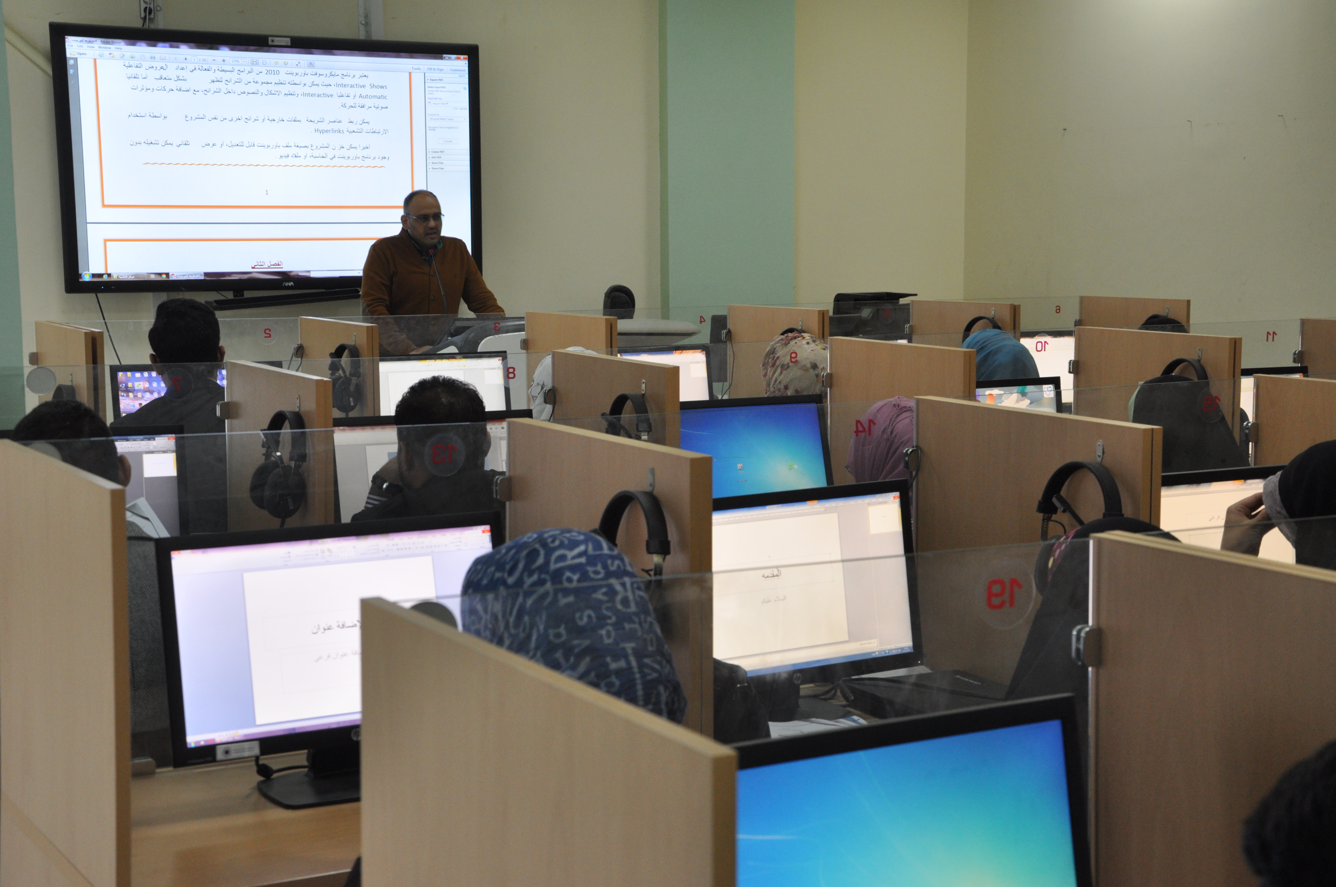 مارس 11, 2018تستمر في جامعة المثنى اقامة دورات كفاءة الحاسوب وكفاءة اللغة الانكليزية حيث بلغت لحد الان اقامة 23 دورة بواقع دورتين في الاسبوع دورة واحدة لكفاءة الحاسوب ودورة واحدة لكفاءة اللغة الانكليزية والتي بدأت بتاريخ 10/ 12/ 2017 م م زينب سعود محمد مدير قسم التعليم المستمر في رئاسة الجامعة قالت ان رئاسة الجامعة قد شكلت لجنة برئاسة الاستاذ الدكتور قاسم محمد الحلو مساعد رئيس الجامعة للشؤون العلمية وعضوية م م حسين علاوي حسن مدير قسم الحاسبة الالكترونية و م م زينب سعود محمد مدير قسم التعليم المستمر للأشراف ومتابعة هذه الدورات التي اقيمت للطلبة الراغبين للتقديم الى الدراسات العليا واضافت عدد المشتركين بدورات كفاءة الحاسوب واللغة الانكليزية بلغ لحد الان (828 ) مشترك ومن المؤمل يشتركون ( 400 ) طالب طالبة في الدورات اللاحقة