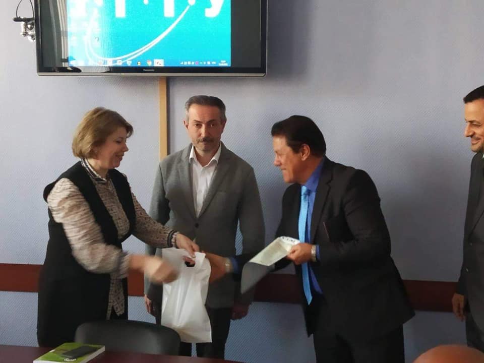 نوفمبر 2, 2018شارك وفد علمي وثقافي من جامعة المثنى كلية الزراعة وجامعات عراقية اخرى وممثلون عن قيادات وأساتذة جامعة بغداد وجامعة البصرة وجامعة الكوفة ووزارة الزراعة العراقية ووزارة التجارة العراقية في المؤتمر العلمي الدولي في روسيا الاتحادية بعنوان استخدام التقنيات الرقمية والانترنت في الهندسة الزراعية وادارة الاقتصاد الصناعي، ونظم هذا التعاون والمشاركة في المؤتمر منظمة اكد للتبادل الثقافي بين العراق وروسيا متمثلة في جامعة تامبوف التقنية الحكومية الروسية وعلى هامش المؤتمر تم زيارة المعرض الثامن للتقنيات الزراعية . فضلا عن مشاركة الوفد في برنامج تدريب مهني إضافي ، يتألف البرنامج وحدات إدارة الوقت ، ومجالات تطوير المحاصيل الزراعية بتقنيات حديثة ، وخصائص التسويق عبر الإنترنت ، وطرق اتخاذ القرارات الإدارية ، مع الأخذ بعين الاعتبار ميزات الإدارة عبر فهم الثقافات. وأشار رئيس جامعة تامبوف التقنية الحكومية ، ميخائيل كراسنيانسكي ، إلى أن ممثلي الجامعات في العراق هم ضيوف مرحب بهم في جامعة تامبوف التقنية الحكومية وبالامكان الاستفادة من خبراتهم لتطوير العمل البحثي المشترك بين البلدين . كذلك اضاف الى ان عدد كبير من الطلاب الأجانب في مرحلة البكالوريوس والدراسات العليا ( الماجستير والدكتوراه)