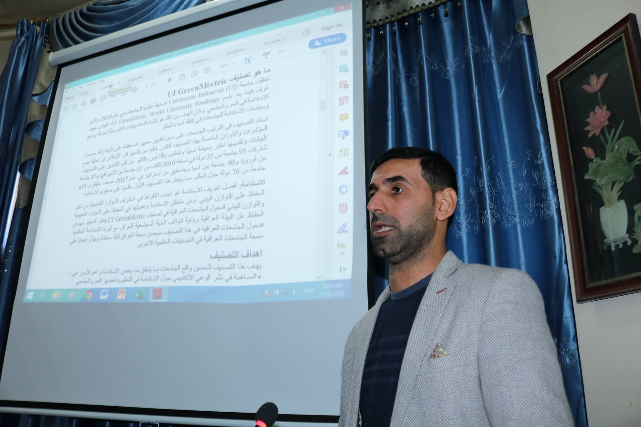 يناير 19, 2020انطلاقا من المنهاج الوزاري للعام 2018_2022 عقدت عمادة كلية العلوم صباح الثلاثاء ١٤/1/2020 وعلى القاعة قاعة الكلية محاضرة تخصصية بعنوان (تصنيف Green metric ) حيث حاضر فيها التدريسي م.د. احمد صبحي جبارة بحضور عميد الكلية الاستاذ الدكتور ليث عبد الحسن محمد جواد والكادر التدريسي في الكلية , وكان الهدف الأول هو اعتبار دخول الجامعات العراقية في التصنيفات العالمية كهدف ومؤشر لجودة التعليم العالي في العراق، حيث باشرت جامعة المثنى ومنذ اللحظات الأولى لتهيئة وإعداد متطلبات الدخول في هذه التصنيفات، واحد هذه التصنيفات هو تصنيف Green Metric . والذي أطلقته جامعة (Indonesia Universitas ) عام 2010 والذيعرف فيما بعد باسم Rankings University World Green Metric UI ،لقياس جهود الاستدامة في الحرم الجامعي. وكان الهدف من ذلك هو إنشاء قاعدة بيانات الكترونية لمعرفة برامج وسياسات الاستدامة للجامعات في كافة أنحاء العالم.واستند التصنيف في ترتيب الجامعات على مدى تطبيق معايير المحافظة على البيئة. حيث شاركت 95 جامعة من 35 دولة في نسخة 2010 تألفت من 18 جامعة من الاميركتين و35 جامعة من أوروبا و40 جامعة من آسيا وجامعتين من أستراليا. في عام 2017 ،صنف مايقارب 619 جامعة من 76 دولة حول العالم. مما يجعل هذا التصنيف الاول عالميا على مستوى الاستدامة. ويذكر ان أفضل تعريف للاستدامة هو تجنب الافراط في استنزاف الموارد الطبيعية من أجل الحفاظ على التوازن البيئي. ومن منطلق الاستدامة واهميتها في الحفاظ على الموارد الطبيعية والتوازن البيئي لدخول الجامعات العراقية في تصنيف Green Metric UI يعتبر كمعيار مهم في الحفاظ عل البيئة العراقية وبداية لتواكب البنية المجتمعية للعراق مع ثورة الاستدامة العالمية. فدخول الجامعات العراقية في هذا التصنيف سيحسن سمعة العراق كبلد مستدام ويؤثر ايجابا على سمعة الجامعات العراقية في التصنيفات العالمية الاخرى.ومما يجدر بالذكر ان جامعة المثنى حصلت على تسلسل 461 عالميا و 7 محليا.