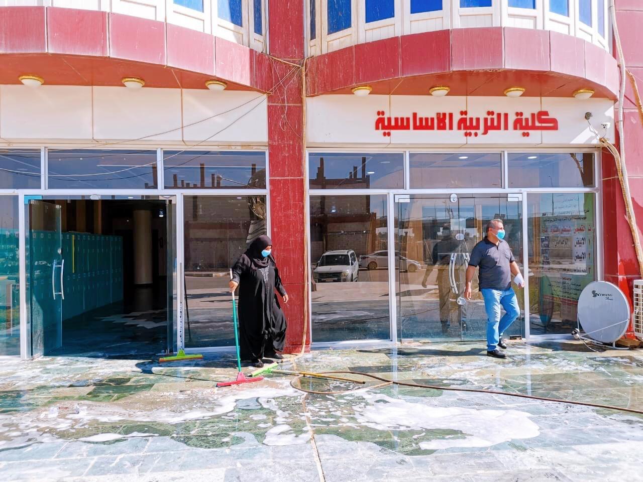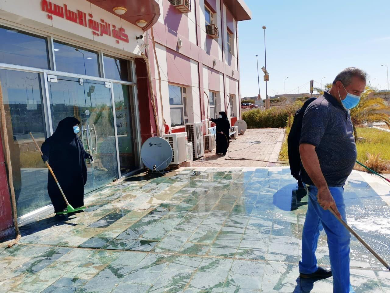 أغسطس 19, 2020بتوجيه رئيس جامعة المثنى الأستاذ الدكتور عامر علي العطوي، وإنطلاقاً من رؤية وزارة التعليم العالي والبحث العلمي الخاصة بتوفير بيئة صالحة للعمل وللدراسة، انطلقت في كلية التربية الأساسية بجامعتنا حملة تنظيف وتعفير وادامة واسعة شملت واجهات بناية الكلية واروقتها وقاعاتها الدراسية إضافة الى تأهيل المساحات الخضراء حول بناية الكلية ورفع الانقاض وجاءت الحملة من اجل ضمان توفير جميع المتطلبات اللازمة لحماية ووقاية وسلامة جميع منتسبي الكلية والجامعة وقاصديها من اخطار وباء كورونا المحتملة ،