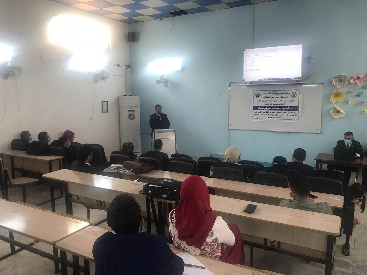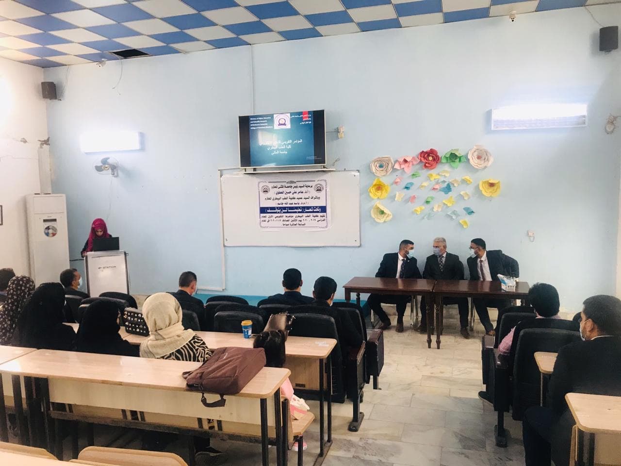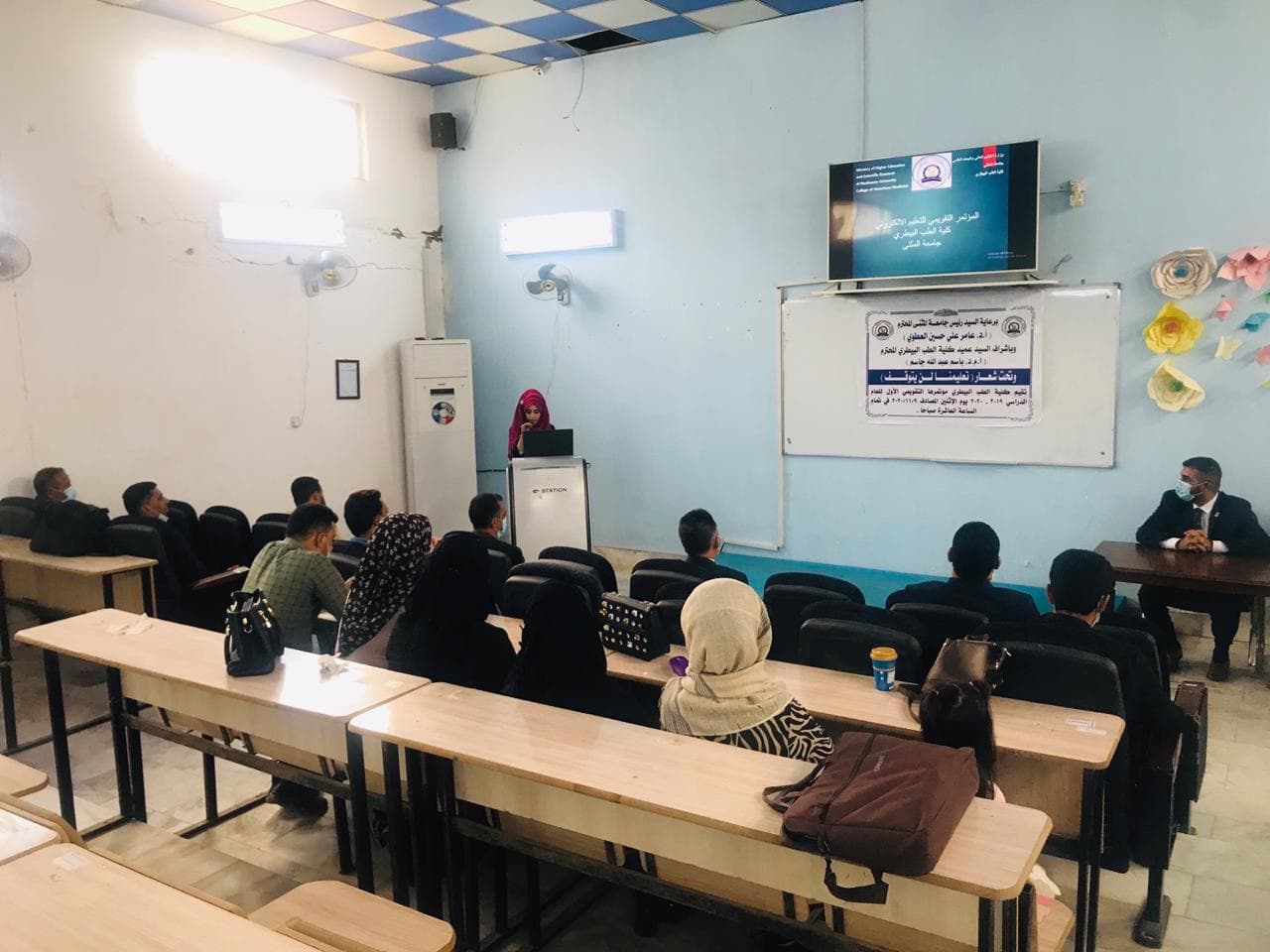 نوفمبر 17, 2020تحت شعار ( تعليمنا لن يتوقف ) تم انعقاد المؤتمر التقويمي الاول للتعليم الالكتروني في كلية الطب البيطري بجامعة المثنى بحضور الاستاذ الدكتور حسين جابر المعالي مساعد رئيس الجامعة للشؤون العلمية وعمداء الكليات في الجامعة بدأ المؤتمر بكلمة الاستاذ المساعد الدكتور باسم عبد الله جاسم عميد الكلية بالإنجازات التي حققتها كليه الطب البيطري برغم الظروف الاستثنائية في ظل جائحة كورونا وتطرق الى تشكيل الفروع العلمي الثمانية في الكلية والانشطة الاخرى المتمثلة بورش العمل ، والبحوث المنجزة والمخططة لتدريسي الكلية ، ودورات تطوير الموظفين ، وتفعيل دور الطبيب البيطري في القطاع العام والخاص فضلاً عن تفعيل التعاون مع الجامعات الاخرى فيما يحص التطورات الحاصلة في الاختصاصات السريرية وختم كلمته بعرض خطة الكلية للعام الدراسي الحالي 2020-2021 التي تضمنت ( استحداث مكتب استشاري يضم عيادات ومختبرات استشارية في مختلف المجالات العلمية ،واستحداث فرع العلوم السريرية ،واستحداث دراسات عليا في فرع الاحياء المجهرية والفسلجية فيما تطرق الاستاذ المساعد الدكتور علي موسى رشيد معاون العميد للشؤون العلمية في الكلية بالتركيز على الجانب العلمي للكلية والتجربة الإلكترونية باستخدام برامج e-learning لمناقشة بحوث التخرج ومعالجة الظروف الاستثنائية بالإضافة الى عمل استبيان لآراء التدريسيين والطلبة حول اليه التعليم الالكتروني والعمل به ودارسة امكانية استخدام الجامعة لبرنامج chrome book بينما اكد الاستاذ المساعد الدكتور حسين باعي معاون العميد للشؤون للإدارية للكلية في كلمته في المؤتمر على النهوض بالكادر الاداري وحاجات الفروع للأجهزة المختبرية اللازمة لتطوير الكلية ، وتخلل المؤتمر كلمات ومداخلات رؤوساء الفروع العلمية في الكلية وتحدثوا فيها في المؤتمر عن جملة من المواضيع المهمة التي تسعى الكلية في النهوض بها من ضمها العمل على تاسيس وحده PCR وافتتاح دراسات العليا في بعض الفروع العلمية والمزيد من البحوث التطبيقيه في دوائر الدوله مما له اهمية في خدمة المجتمع ، واختتم المؤتمر بكلمة الاستاذ الدكتور حسين جابر المعالي المساعد العلمي اكد فيها على مقدار العمل المنجز من قبل الكوادر التدريسة في الكلية في الجانب العلمي.