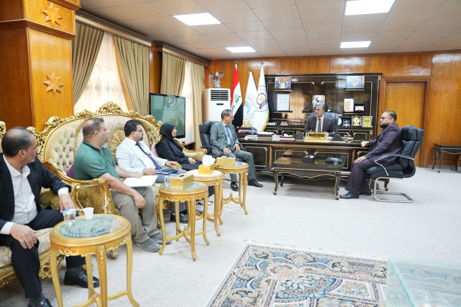 رئيس جامعة المثنى يستقبل لجنة وزارية تبحث في مخرجات استحداثات كليات الجامعة